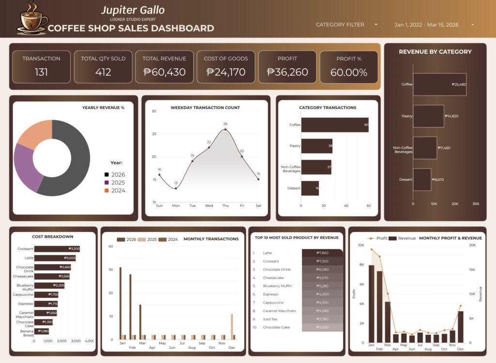 Freelance Looker Studio specialist from the Philippines, helping businesses and agencies worldwide with fast, accurate, and actionable dashboards and reports.