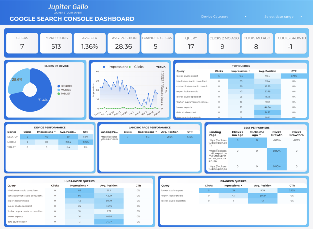 Boost organic traffic with a Looker Studio SEO dashboard for Google Search Console.